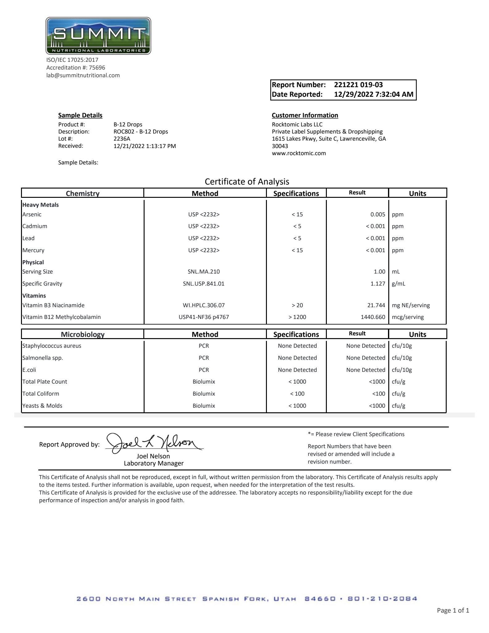 Vitamin B12 (Cyanocobalamin) — 1,200 mcg (50,000% DV)