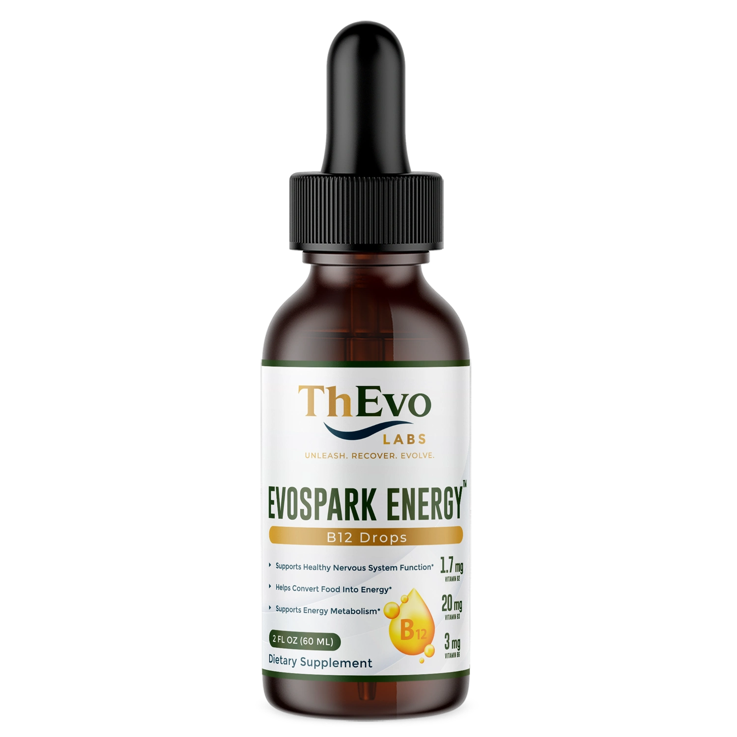 EvoSpark Energy™ is a liquid B-Complex formula designed to support daily energy metabolism, focus, and overall wellness. Each serving delivers a high-potency blend of essential B vitamins—including B12, B6, niacin, riboflavin, and pantothenic acid—in a convenient liquid dropper for easy daily use.
